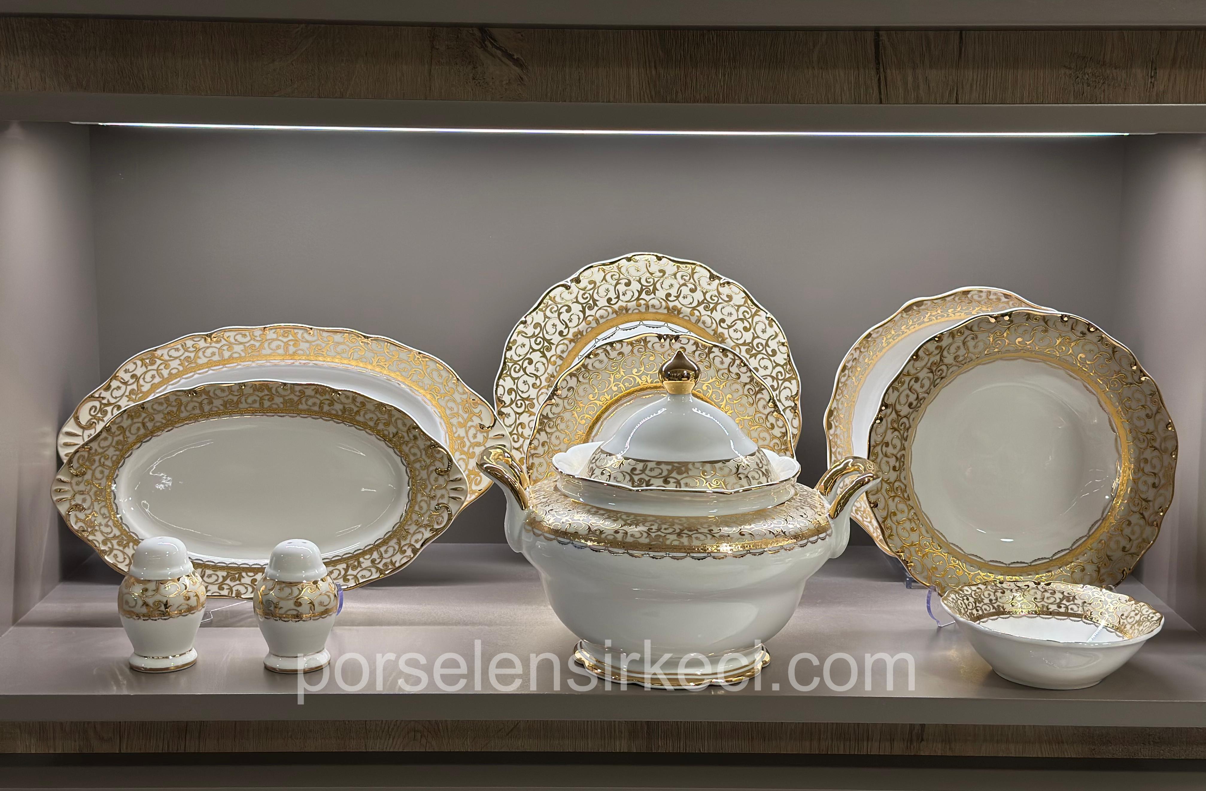 Jeremy Golden Lace Cream 72 Parça 12 Kişilik Yemek Takımı